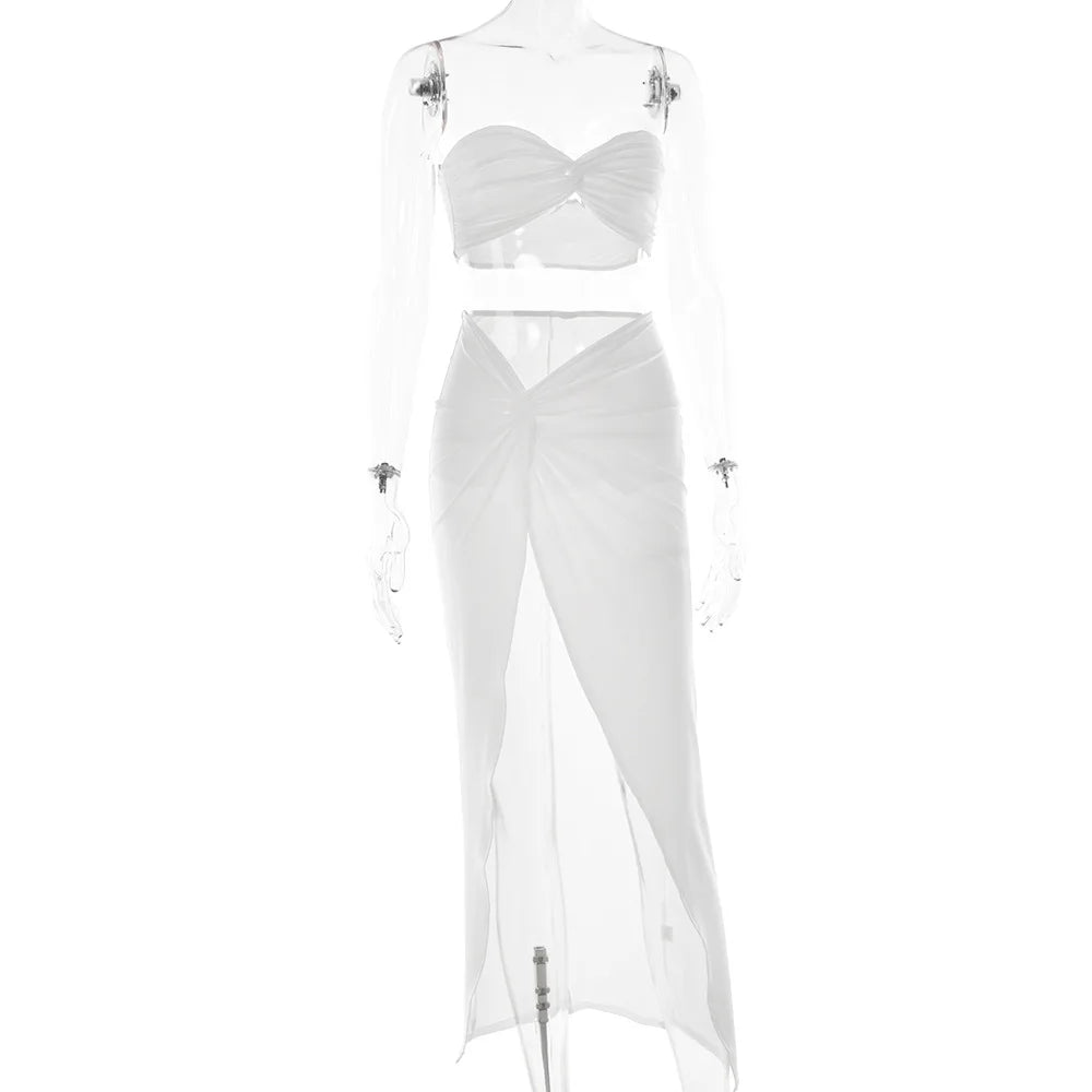 Cryptographic Draped Ruched Dress Sets for Women Sexy Two Piece Sets Elegant Fashion Outfits Tube Top and Skirt Matching Sets