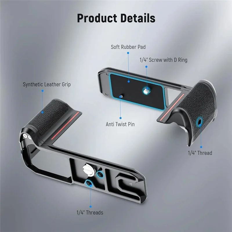 Comfortable & Nonslip Handle:The L-bracket's nonslip handle offers a secure grip, enhancing stability and comfort during handheld shooting.