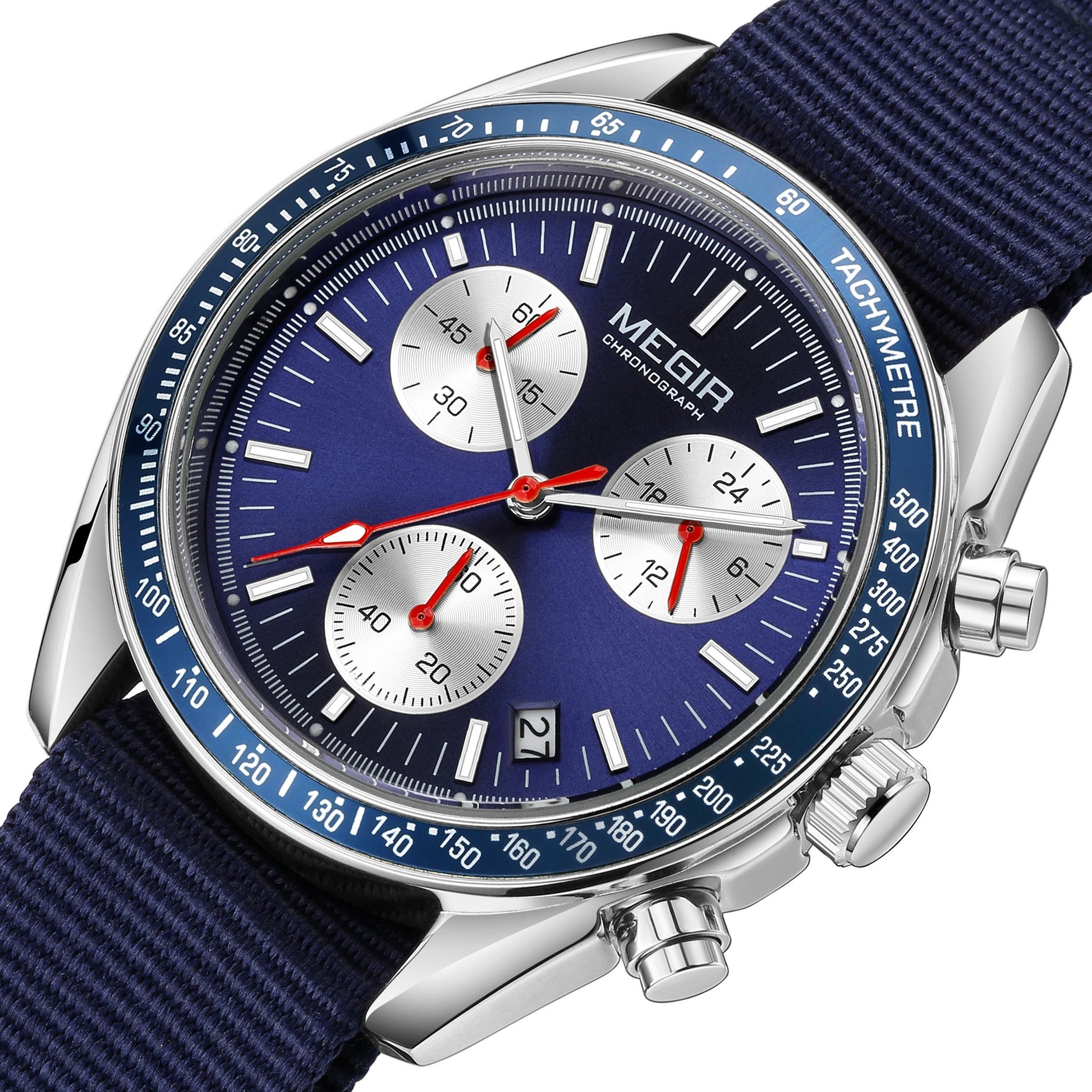 MEGIR Fashion Brand Men Wristwatches Military Sport Watches Canvas Strap Waterproof Chronograph Clock Gift for Men Montre Homme 2247