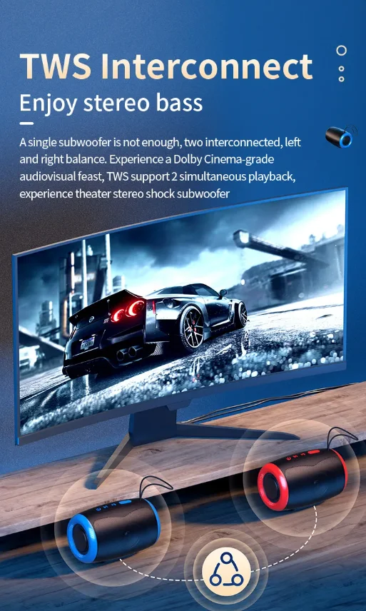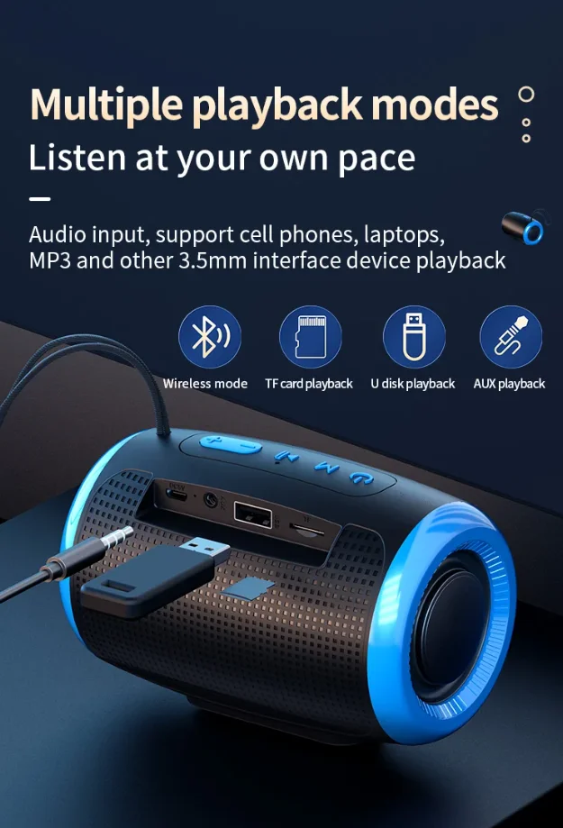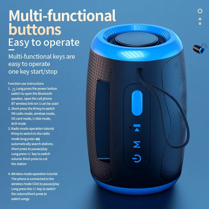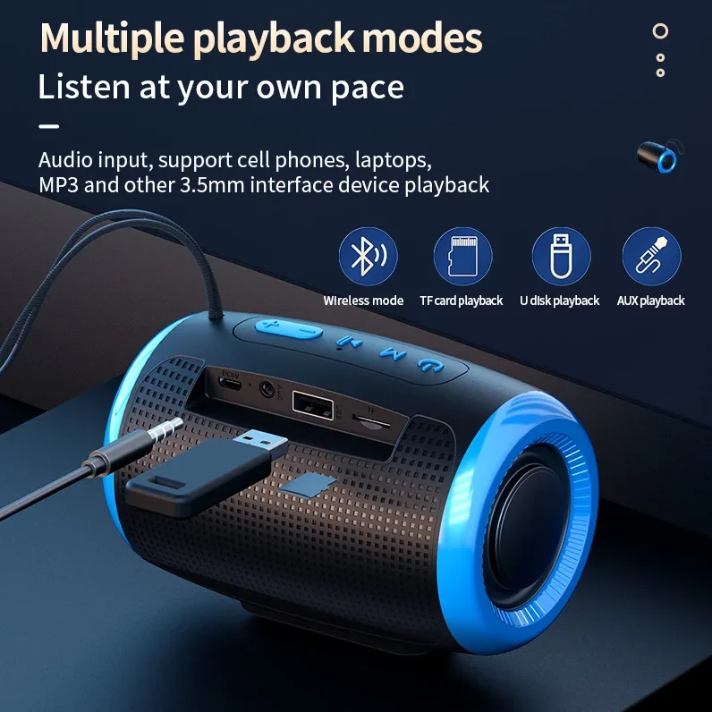 Portable Bluetooth Speaker Outdoor Waterproof Wireless TWS Radio Column Box Speaker Support TF card Stereo 3D Hi-Fi Music Player